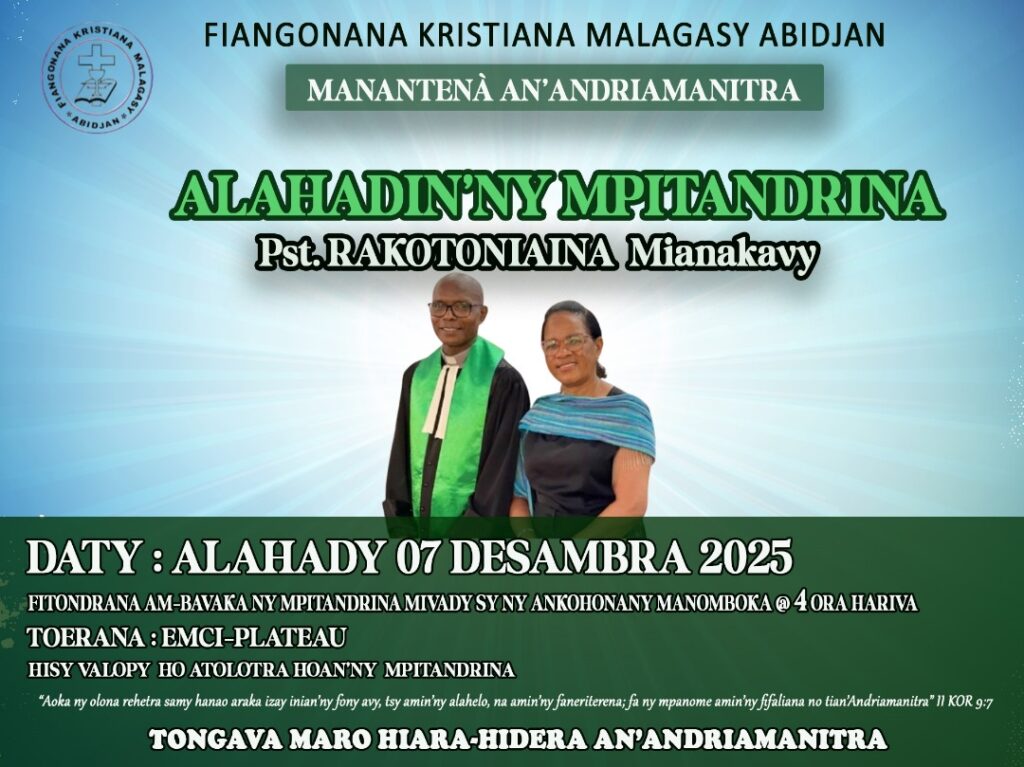 Alahadin’ny Mpitandrina : 07/12/2025par admindans Vaovaom-piangonanasur Publié le 07/12/202515/12/2025 Horonantsary Toriteny Sary Post Views: 8 Lahatsoratra sahala
