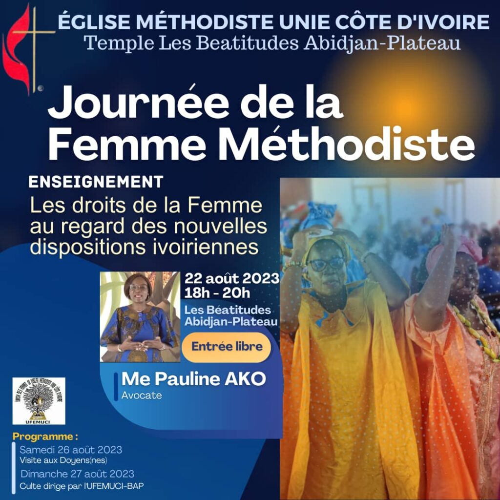 Fotoana miavaka hanasana ny vehivavy rehetra ny Talata 22 Aogositra ho avy izao manomboka @ 6 ora ka hatramin’ny 8 ora alina noho ny « Journée de la Femme Methodiste » araka io fanasana io.